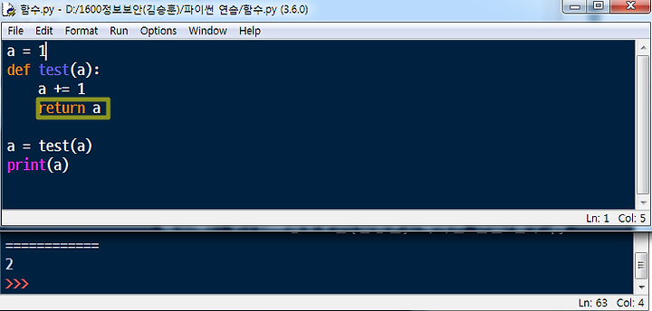↑test함수에 입력으로 들어온 1을 더한 값을 return을 통해서 돌려준다.