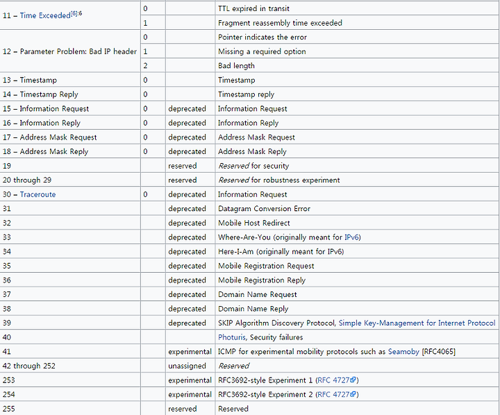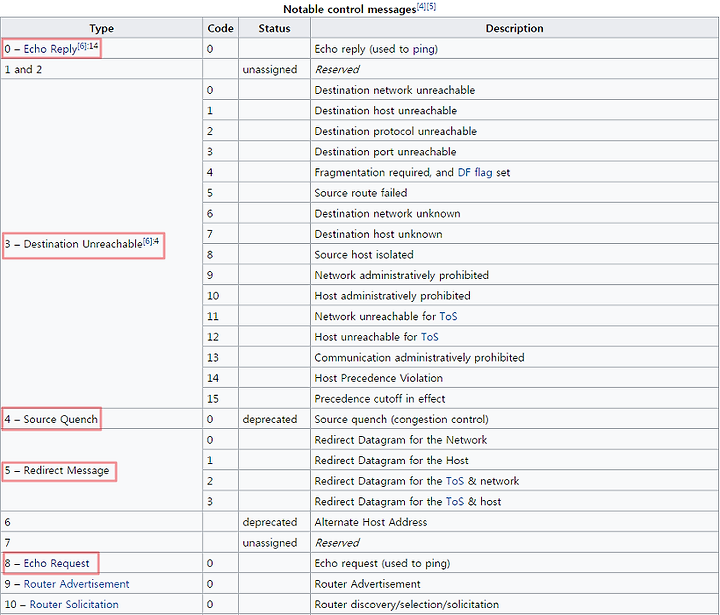 ↑ ICMP Control Messages 참고, 위키백과
