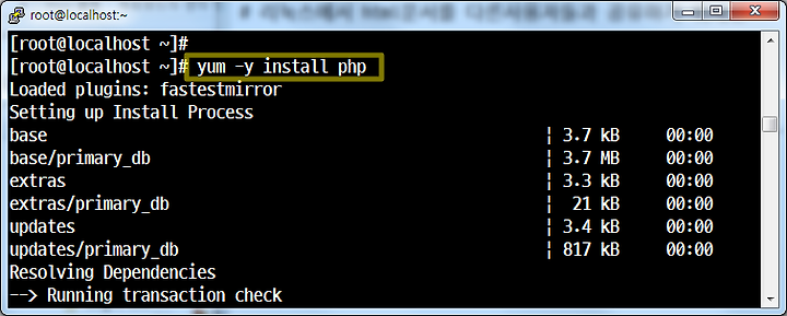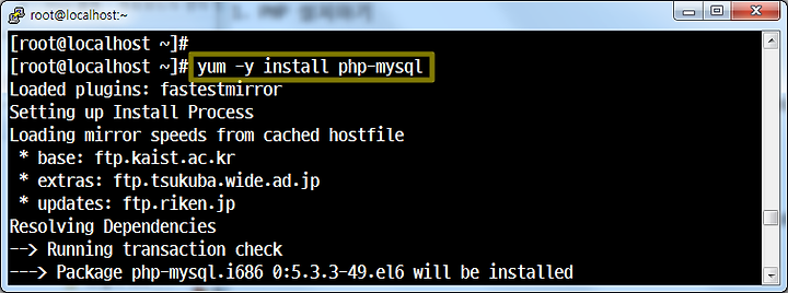 ↑ PHP를 Mysql databases에서 사용할 수 있도록 php-mysql 설치