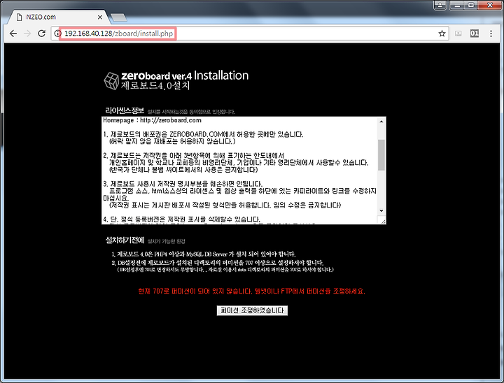 ↑ 제로보드는 PHP기반이기 때문에 PHP설치가 필수