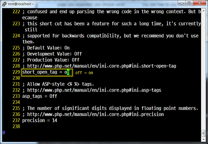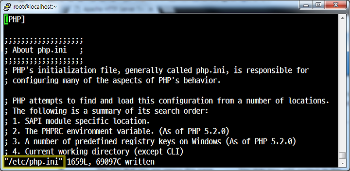 # vi를 통해 /etc/php.ini를 열어 준다.