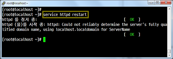 ↑ 변경한 설정을 적용하기위해 httpd를 재시작 해준다.
