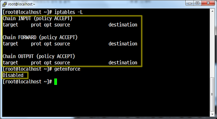 ↑ 원활한 실습을 위해 selinux = disabled , 방화벽 해제