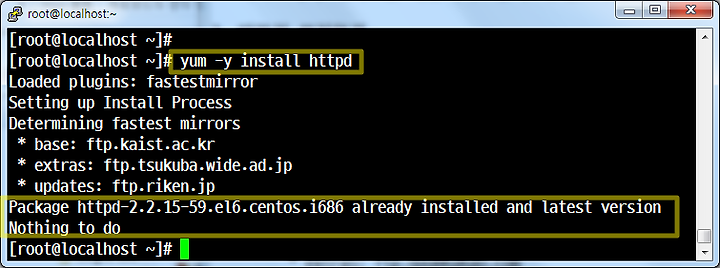 # 위와 같은 화면이 나오지 않는다면 httpd 서비스가 가동 중인지 확인