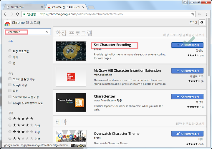 # Set Character Encoding 크롬에 추가