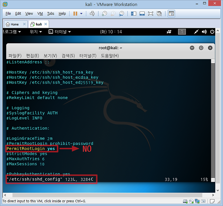 ↑ root@kali:~# vi /etc/ssh/sshd_config // SSH 설정 파일