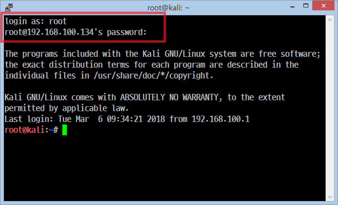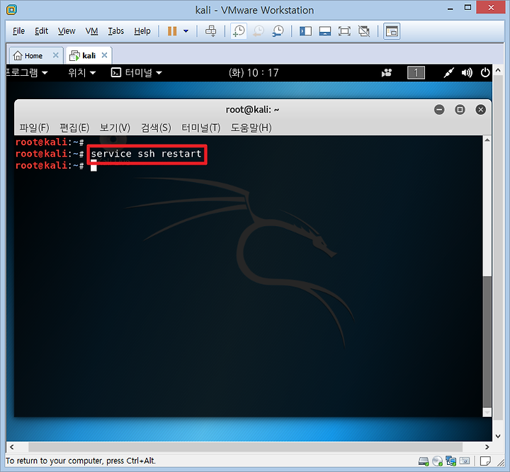 root@kali:~# service ssh start // ssh 서비스 시작 명령