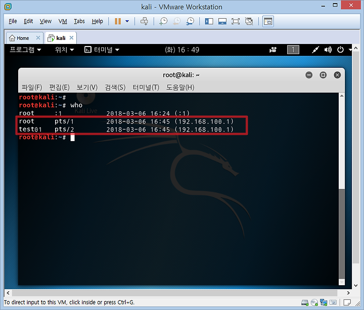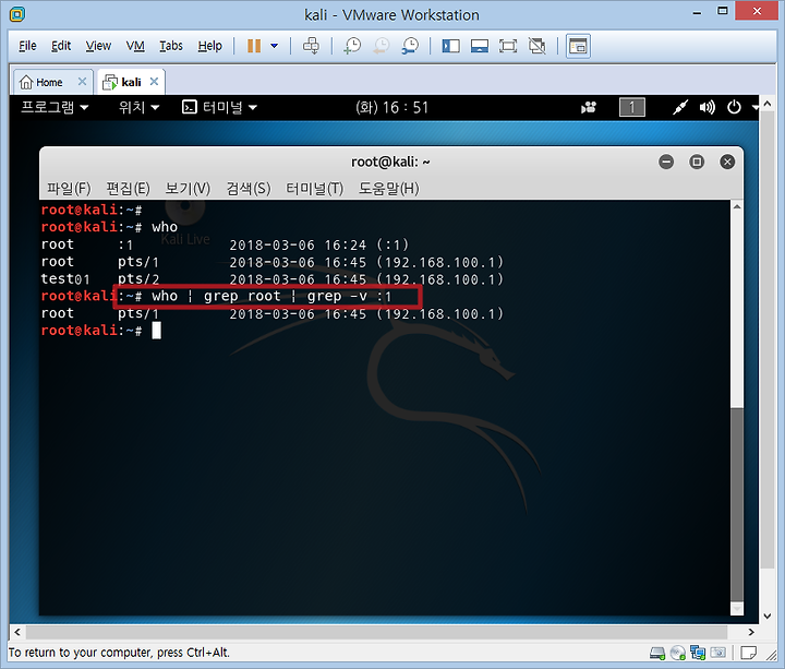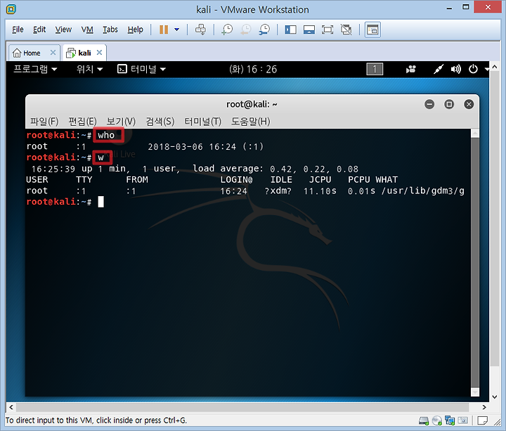 ↑ who 명령을 사용