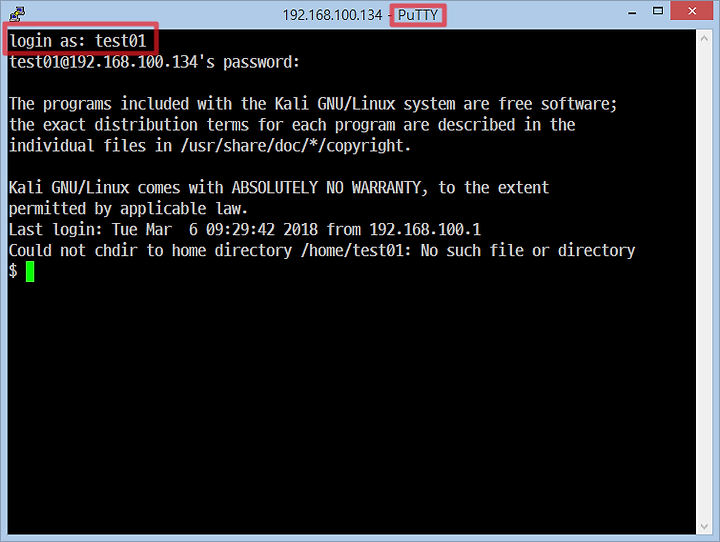 ↑ Putty를 이용한 일반 사용자 로그인