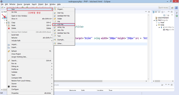 ↑CSS파일을 외부에 만들어 test1.html파일과 연결해 보겠습니다.