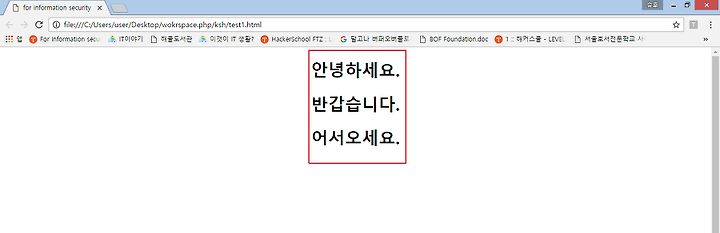 ↑/* */ 주석을 제거하고 저장한후, 페이지를 열어보시면 스타일 시트의 설정 내용이 적용돼 있습니다.