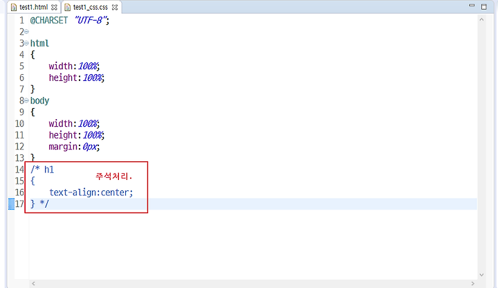 ※저는 가독성을 높이기 위해 css파일 내용을 가로로 작성했습니다.※