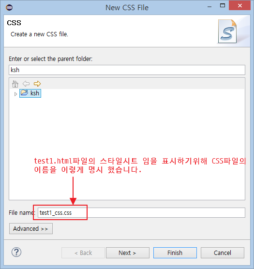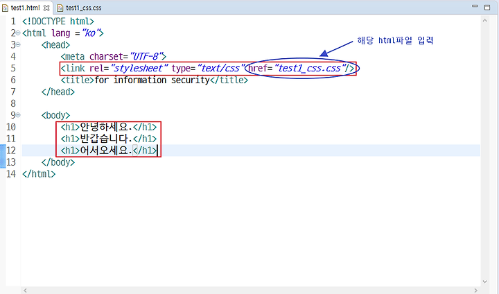 이렇게 test1.html파일에 대한 스타일 시트 파일 test1_css.css를 만들어