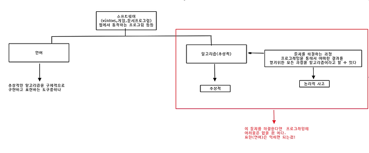 결과물을 이끌어 내기위한 논리적 사고의 과정이 끝나면 그뒤에 내가 필요한 언어를 선택해서 사용하고 그 언어를 사용