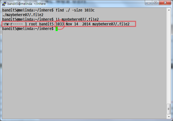↑ find ./ -size 1033c 를 사용해서 용량이 1033바이트인 파일을 검색했더니 딱 한개의 파일이 나왔습니다!