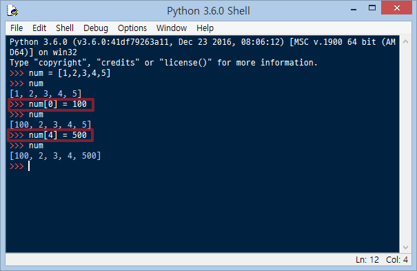 ↑ 원소의 값을 재지정 하여 값을 변경할 수 있다.