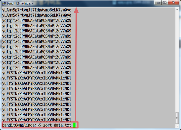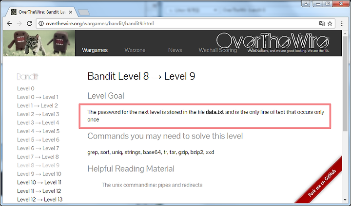 ↑주어진 힌트는 역시 다음 레벨의 키는 data.txt안에 있는데, 오직 한줄에서만 보여준다고 합니다.